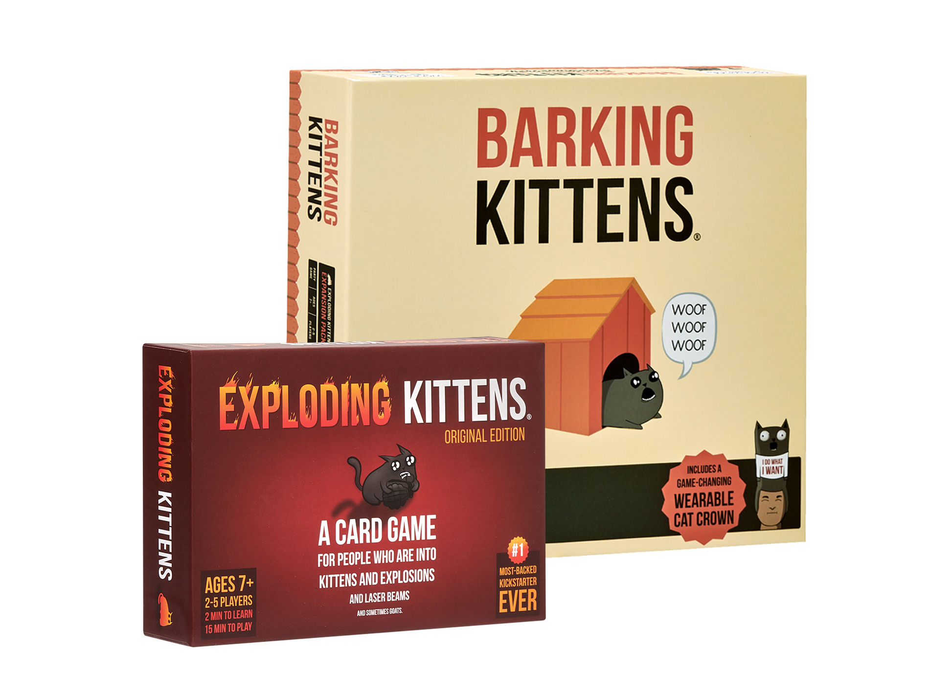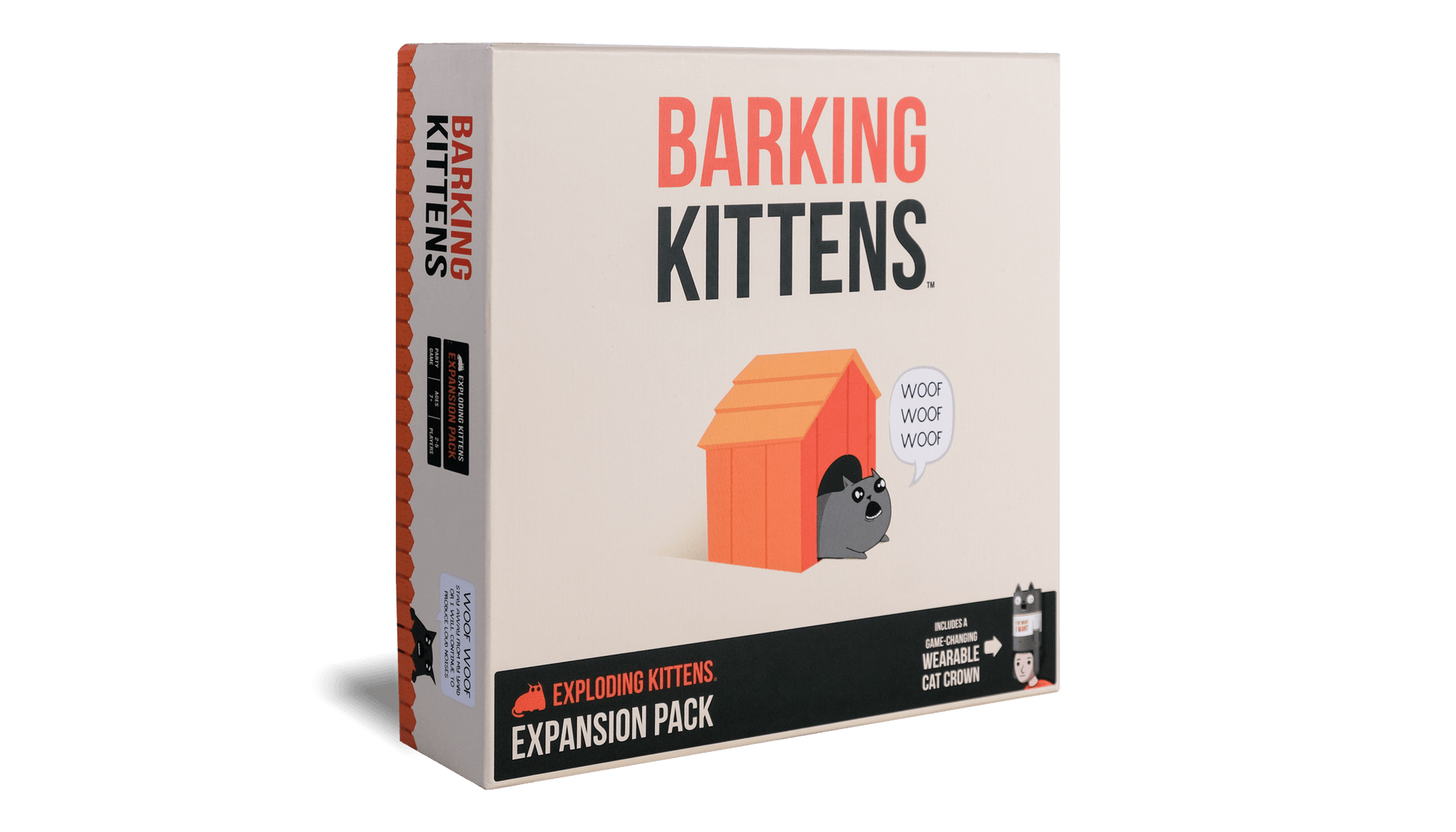 You could just get Exploding Kittens: Original Edition, or you could get the Original Edition PLUS our third expansion pack, Barking Kittens. Barking Kittens adds 20 new cards and a game-changing wearable Cat Crown that allows you to hold a secret stash of cards on your head.