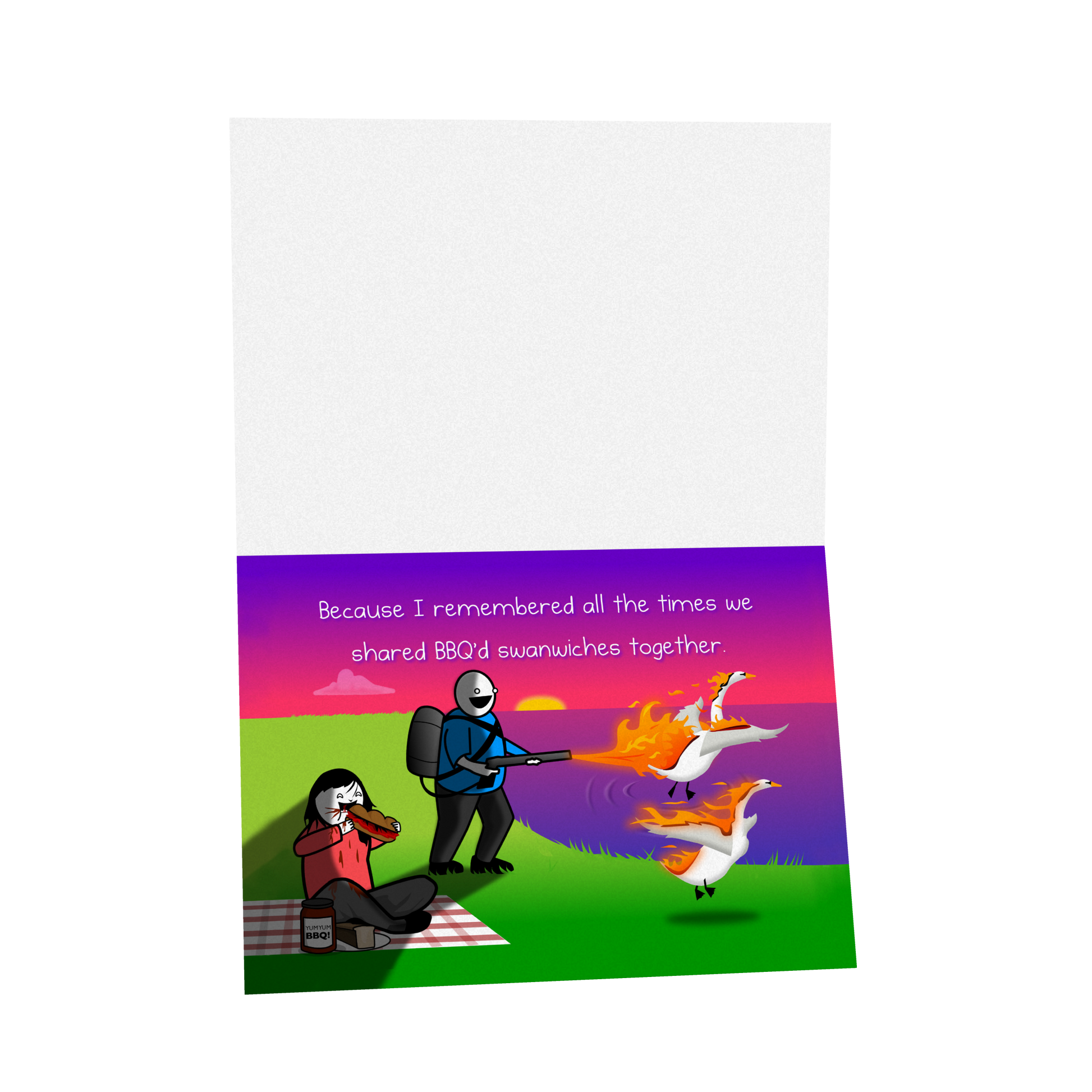 Looking for a hilariously inappropriate way to express your feelings? Our NSFW Love & Friendship Greeting Card features mating swans in a delightfully crude design. Perfect for friends with twisted humor or that special someone who appreciates edgy jokes. Each card delivers laugh-out-loud moments with premium quality and memorable messaging.