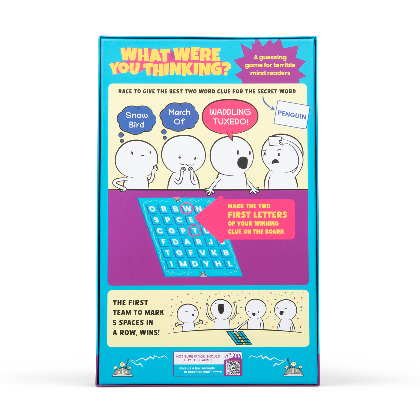 Can you give the perfect clue before anyone else??What Were You Thinking? is a guessing game for horrible mind readers, and it's as fun to watch as it is to play.