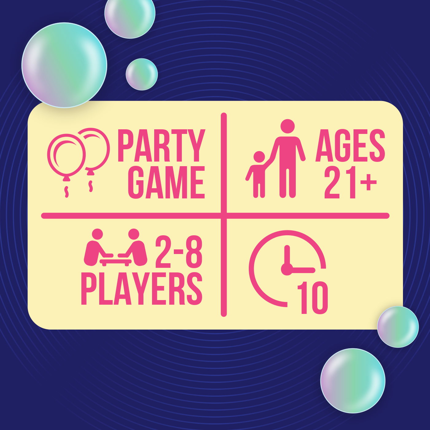 Spice up any party by grabbing your favorite beverage and giving the spinner a go. Whatever it lands on dictates how much you have to drink and/or what mortifying and hilarious task you have to complete. You can stop the spinner at any time¡but so can any other player! You gotta think fast, move faster, and be ready to drink up while you crack up.